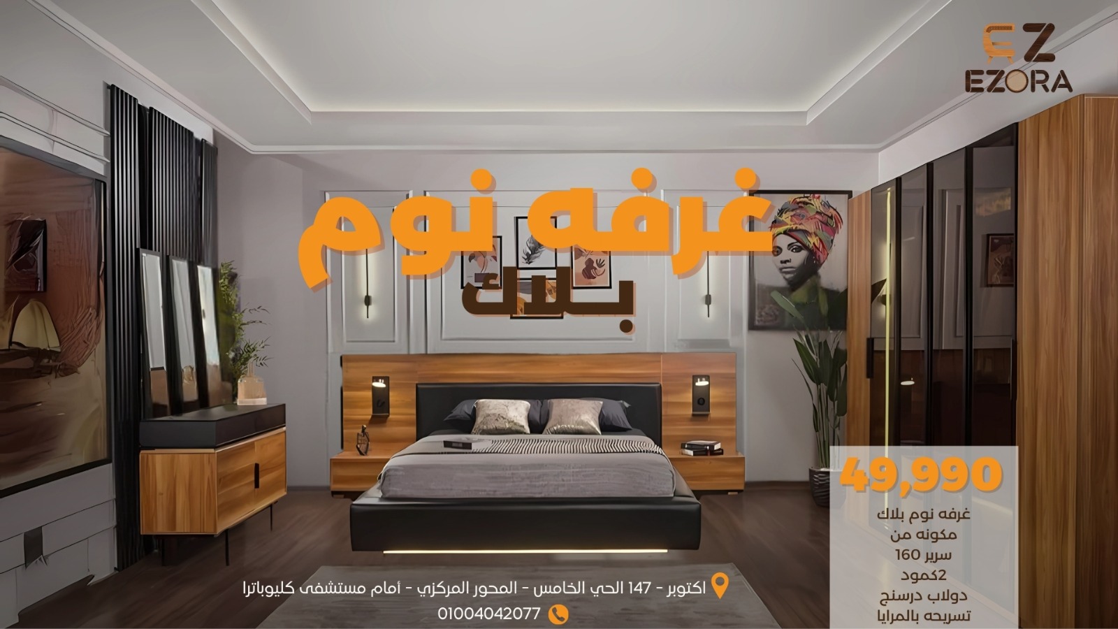 Black bedroom Comprising 160-inch bed 2 nightstands Dressing closet Dressing table with mirror